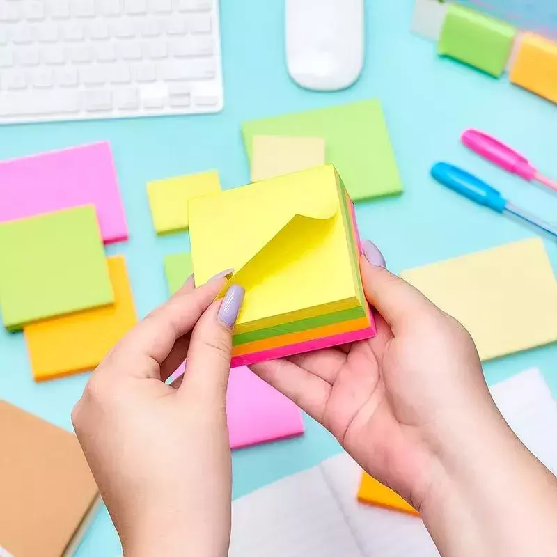 O Cubo adesivo colorido é perfeito para manter suas anotações e recados organizados. Este conjunto inclui 4 blocos de cores neon: amarelo, rosa, verde e laranja. Cada bloco contém 400 folhas autoadesivas, proporcionando um total de 1600 folhas para suas anotações importantes, destaques de conteúdos, recados e muito mais.