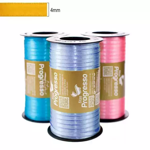 Fita de cetim Progresso N°00, contém 100 metros de comprimento e 4mm de largura, feito 100% em poliéster, a fita possui superfície lisa, macia e brilhante que torna as fitas de cetim perfeitas para o uso na decoração e produção de laços e tiaras para bebê.
