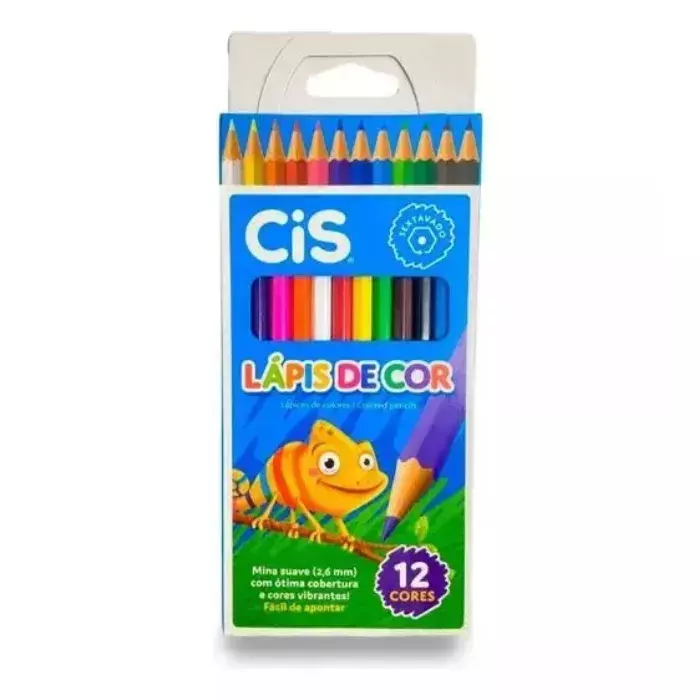 Lápis de cor sextavado. Lápis ideal para uso escolar. Os lápis Cis, possuem cores vivas, corpo plástico no formato sextavado, grafite resistente e não agridem o meio ambiente. Não tóxico, ponta resistente com cores vivas e intensas Lápis de Cor em madeira com mina de cera e pigmentos.