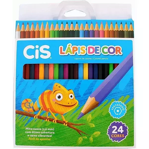 O Lápis de Cor Cis 12 Cores possui mina suave (2,6mm), com ótima cobertura e cores vibrantes e formato sextavado que ajuda na hora da pintura pois não escorrega o que garante toda segurança para nossas crianças.