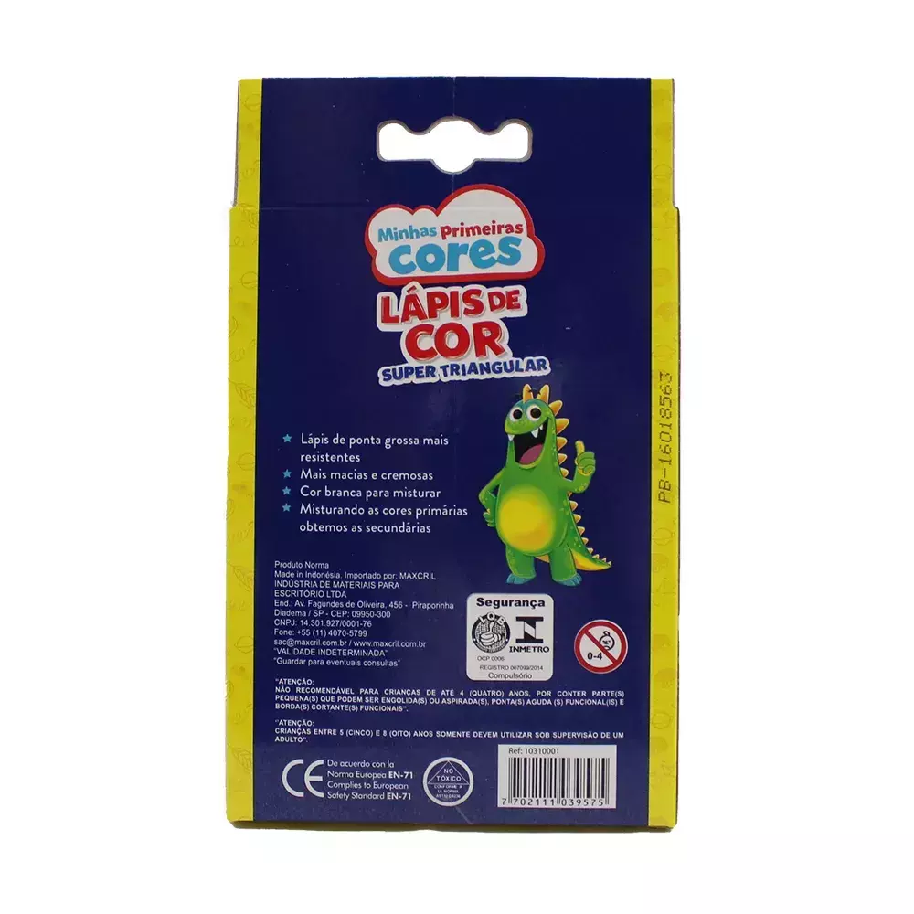 Os lápis de cores super triangular norma são feitos de madeira de reflorestamento atóxico, o que não prejudica o meio ambiente. Suas pontas são grossas e resistentes, macias e cremosas. Possui cor branca para poder misturar, além de cores metalizadas. Lápis de cor super triangular: caixa com 12 cores, possui ponta de 5,5mm e apontador grátis. A versão super ajuda no desenvolvimento da coordenação motora, por isso ele é recomendado para crianças na fase pré-escolares.